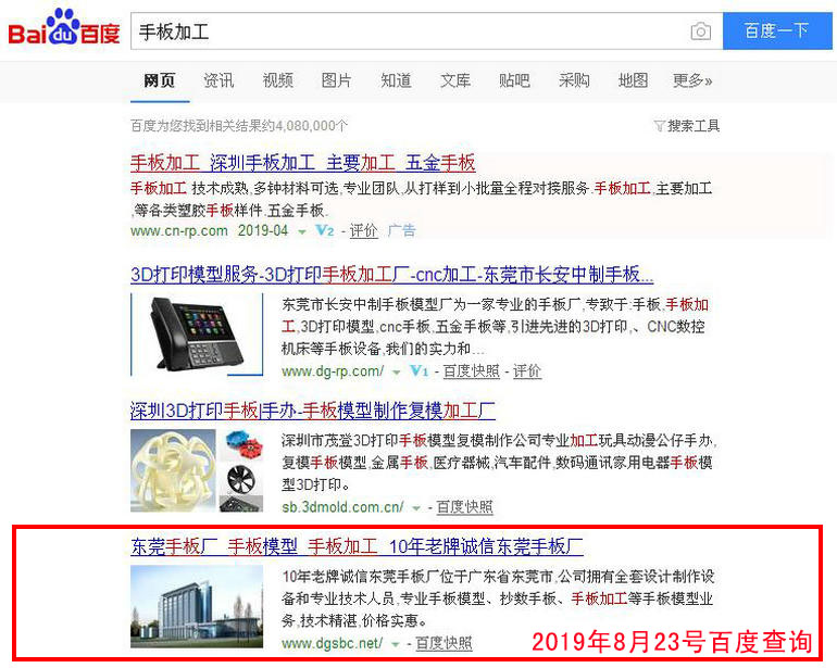 手板加工 百度(PC)自然排名第1名